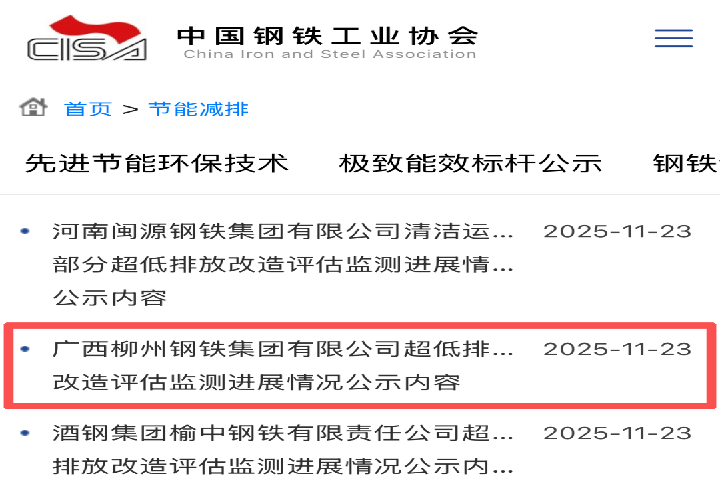 正式公示!柳鋼集團超低排放改造實現關鍵跨越